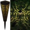 Auto turn ON and OFF, Save energy;Rechargeable battery included,No wire need;Create a vivid pattern on the ground;Size: Width 9.5cm* Height 33.5cm (include spike)Water-resistant: IP65, the solar lights can work well in the rainy day.