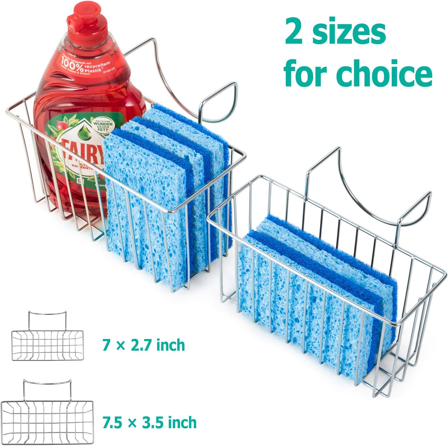 Damita Kitchen Sponge Holder Sink Basket Sink Caddy Brush Dishwashing Liquid Drainer Rack Silver Small (6.7″ x 4.5″ x 4.5″)